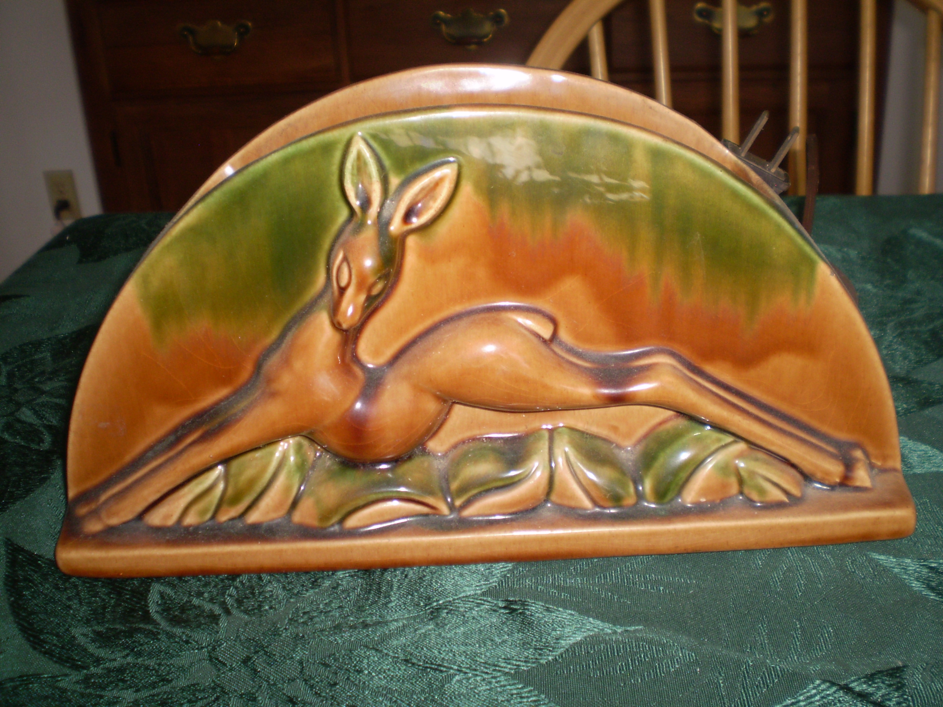 Haeger R-1146 TV Lamp and Planter running deer [brown & green glaze]