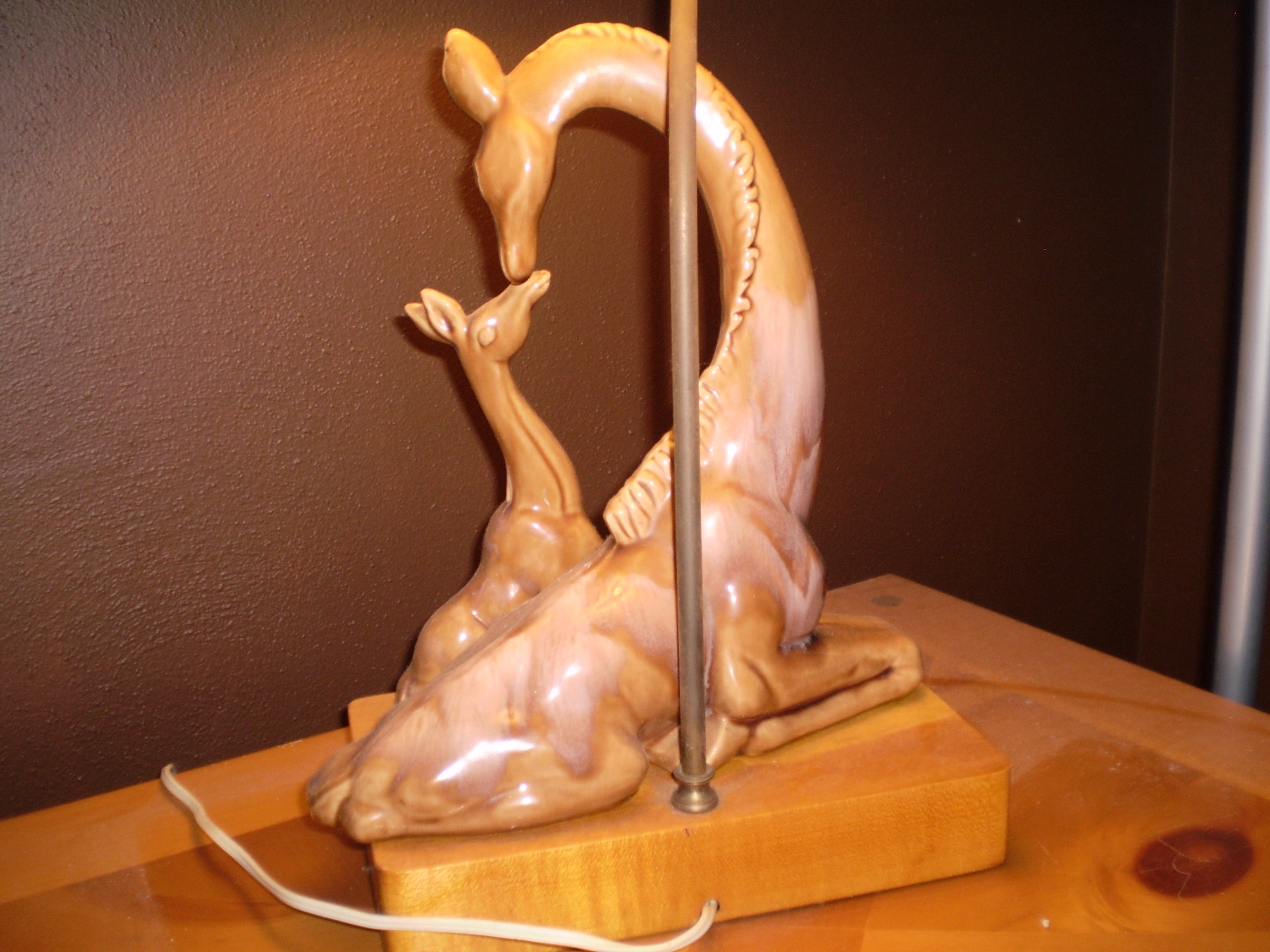 Haeger 6200 TV Lamp and Planter Gazelle [walnut / white glaze]