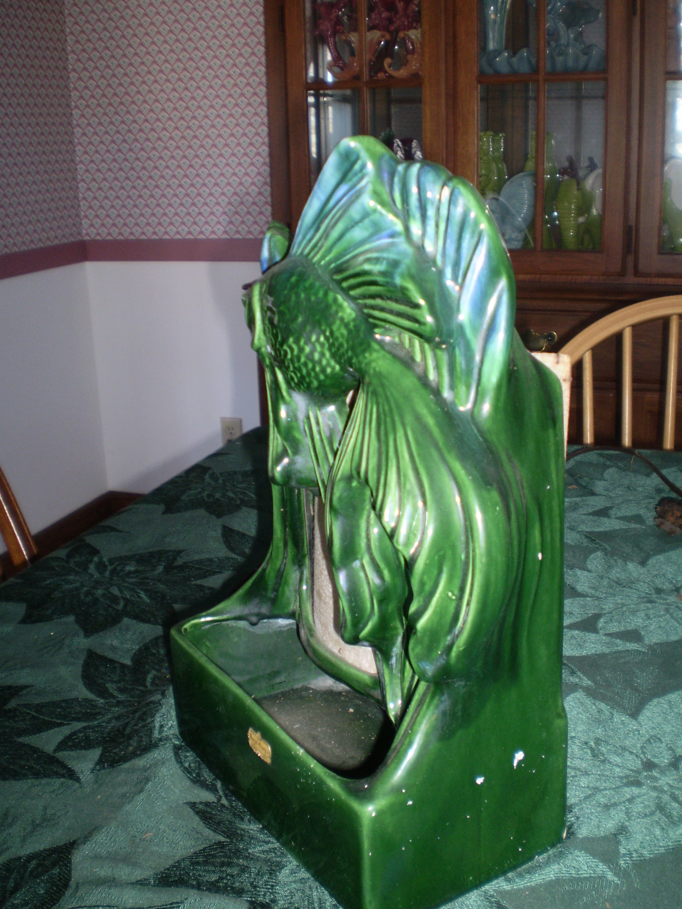 Haeger 6124 fish TV Lamp [green agate glaze]