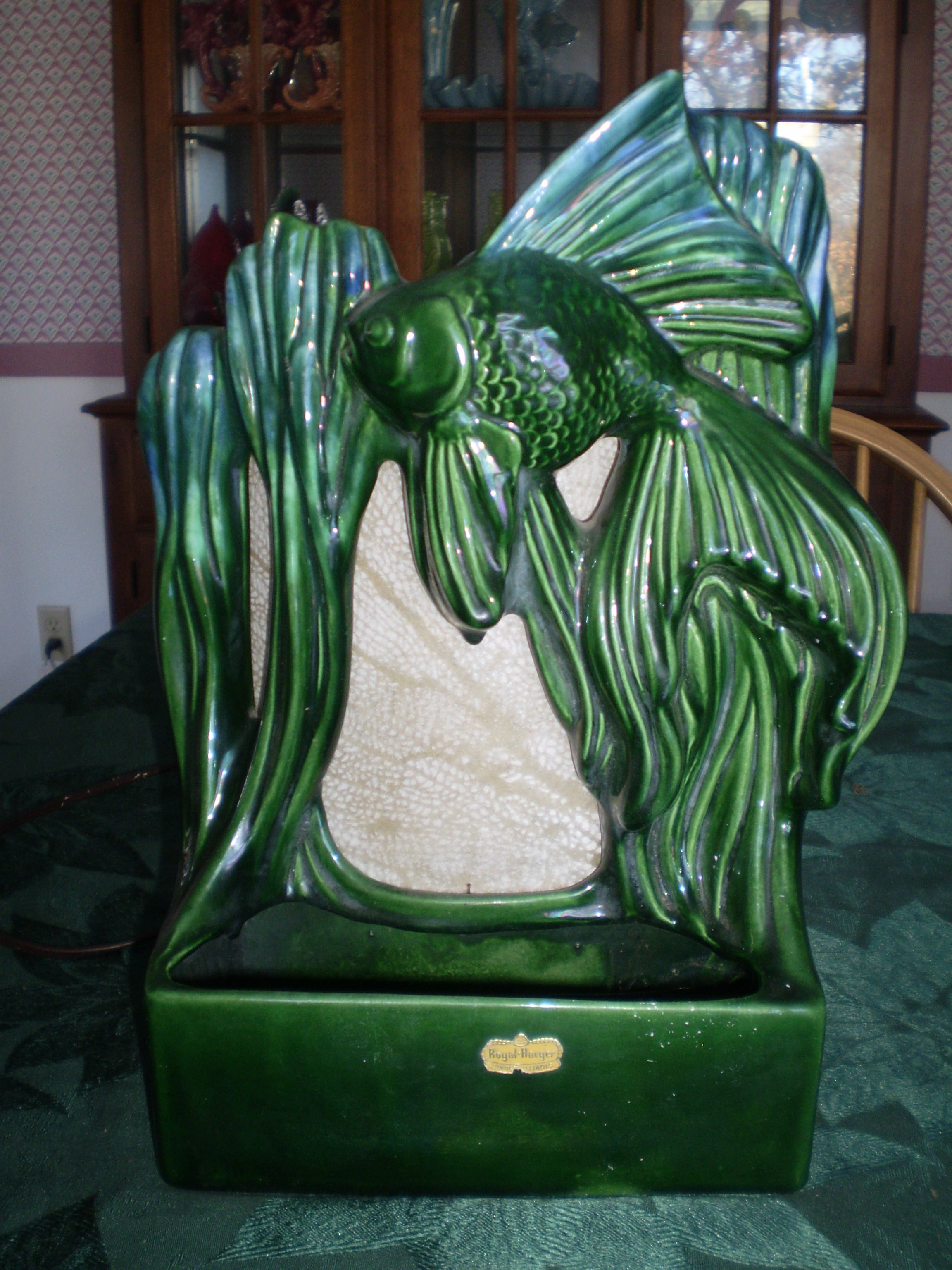 Haeger 6124 Fish TV Lamp [green agate glaze]