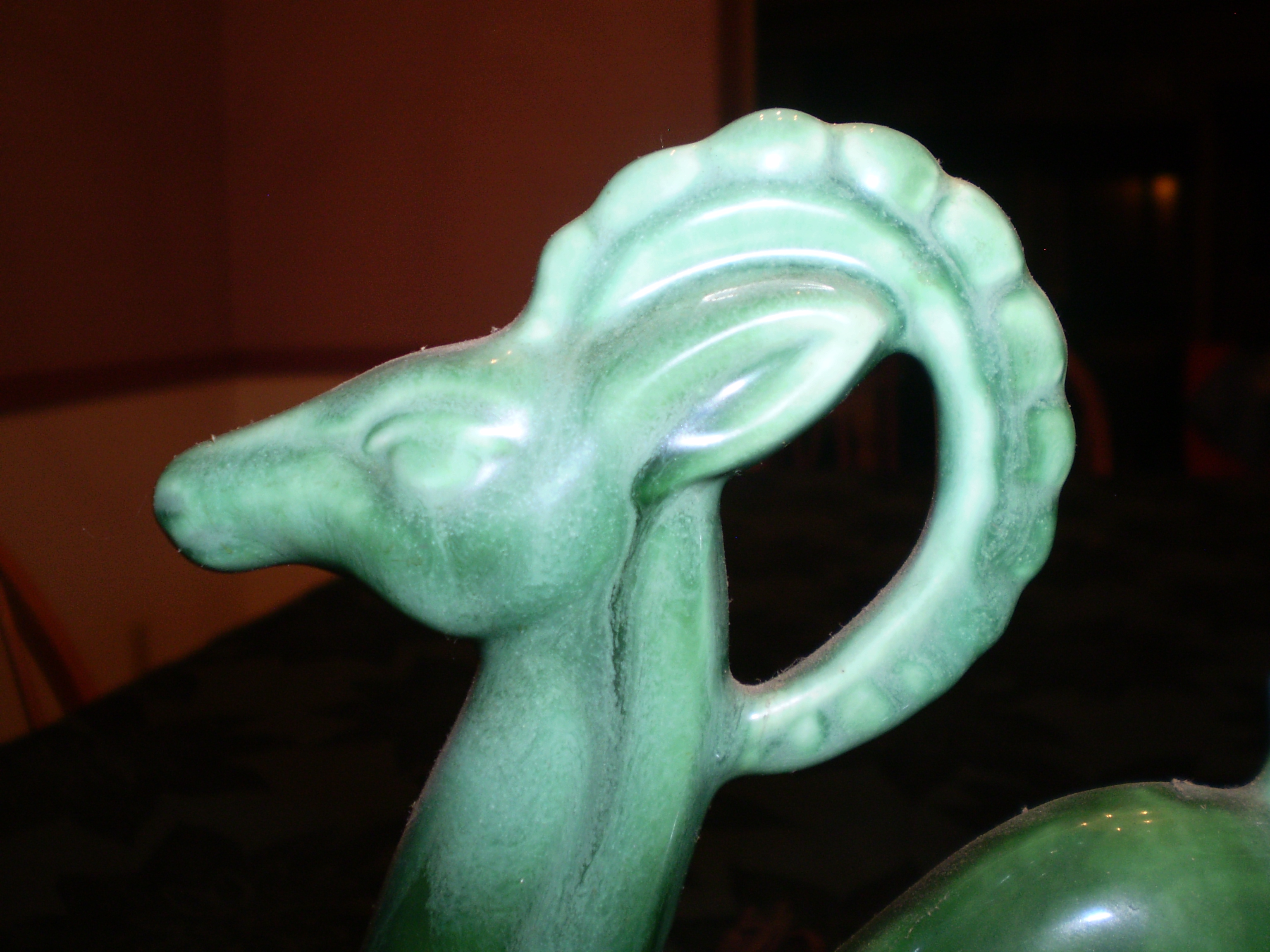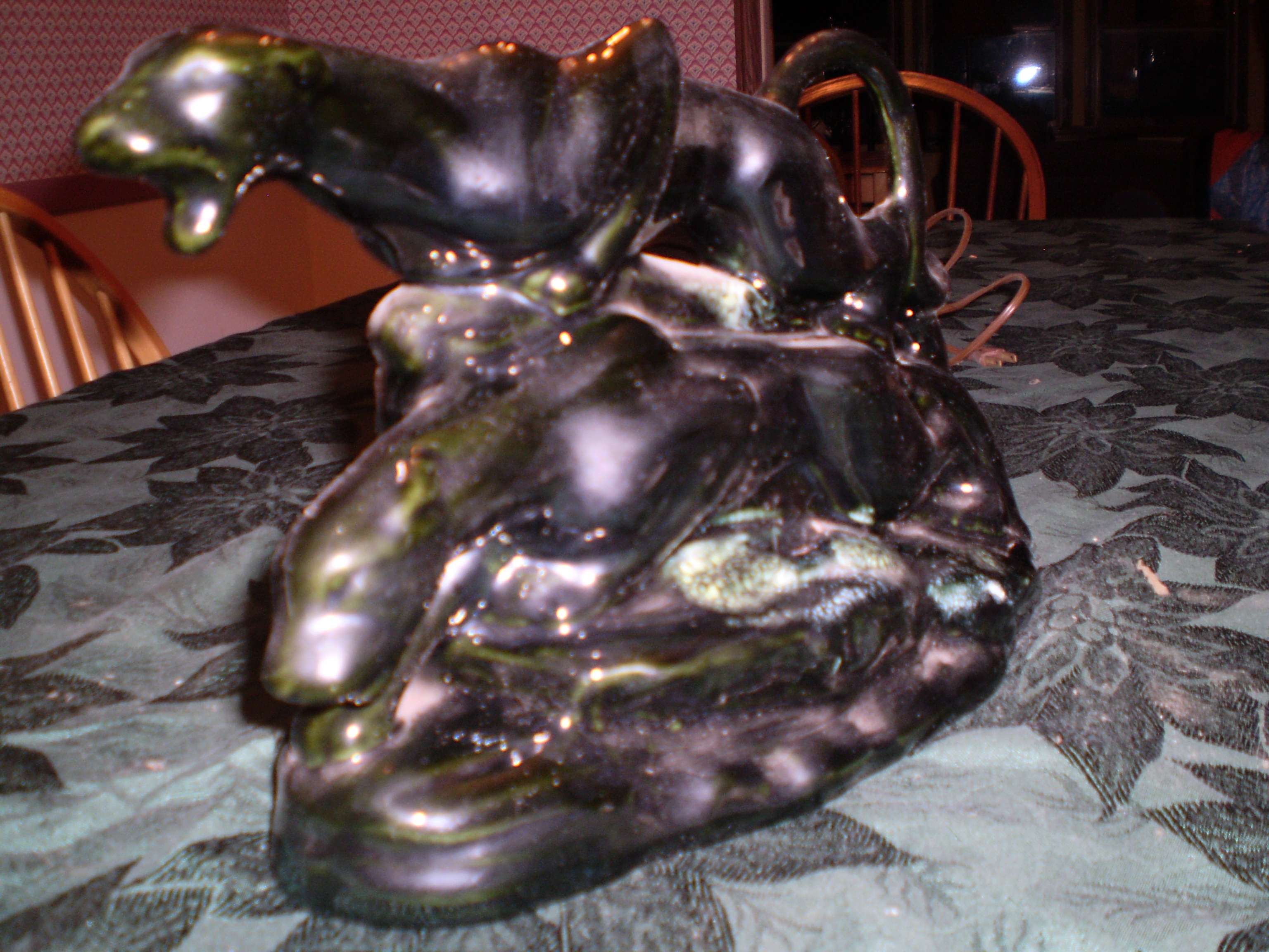 i cannot find in any reference material. the glaze, style and subject matter make me believe this is haeger. please, if anyone knows otherwise or confirm, let me know.