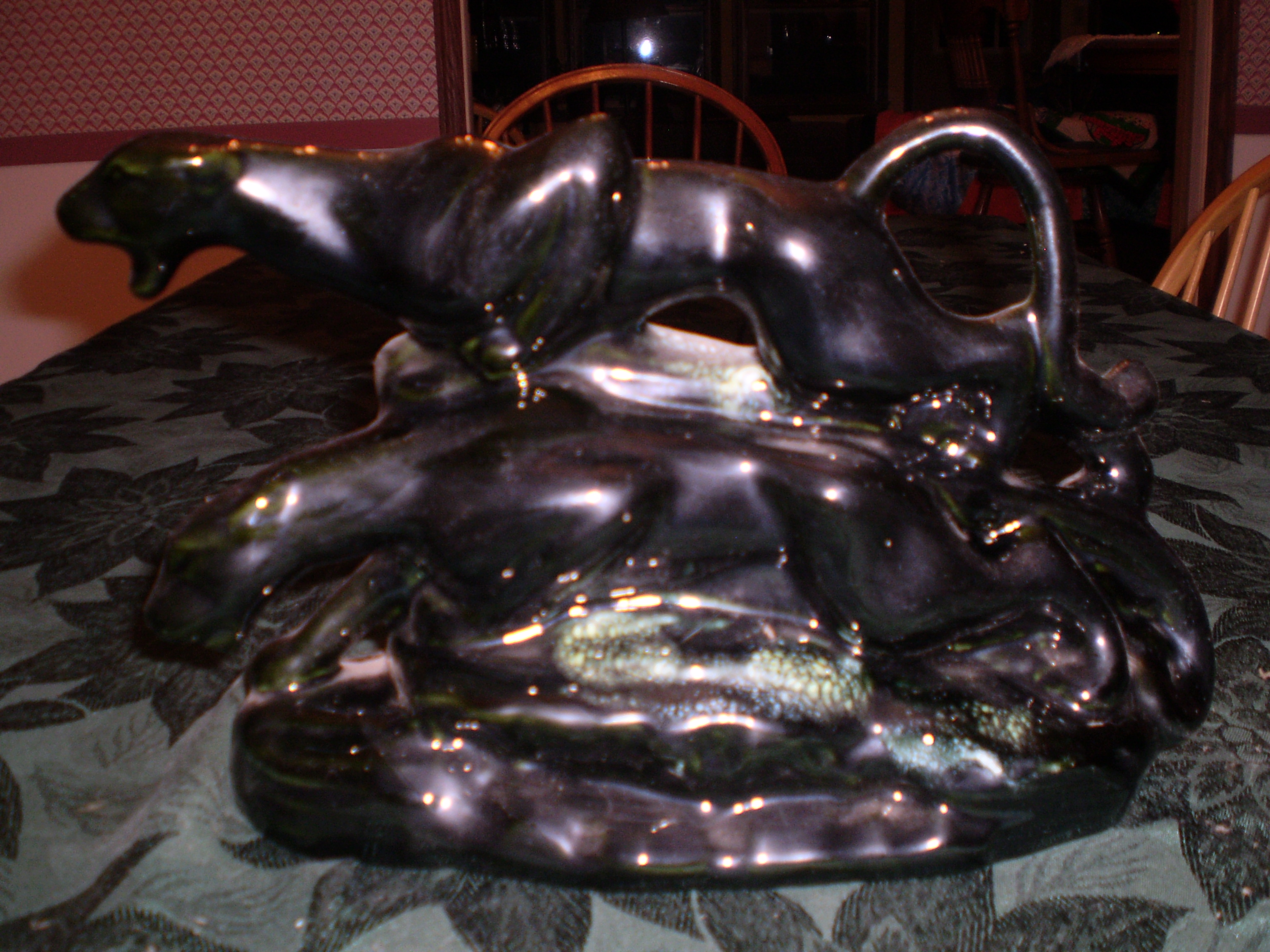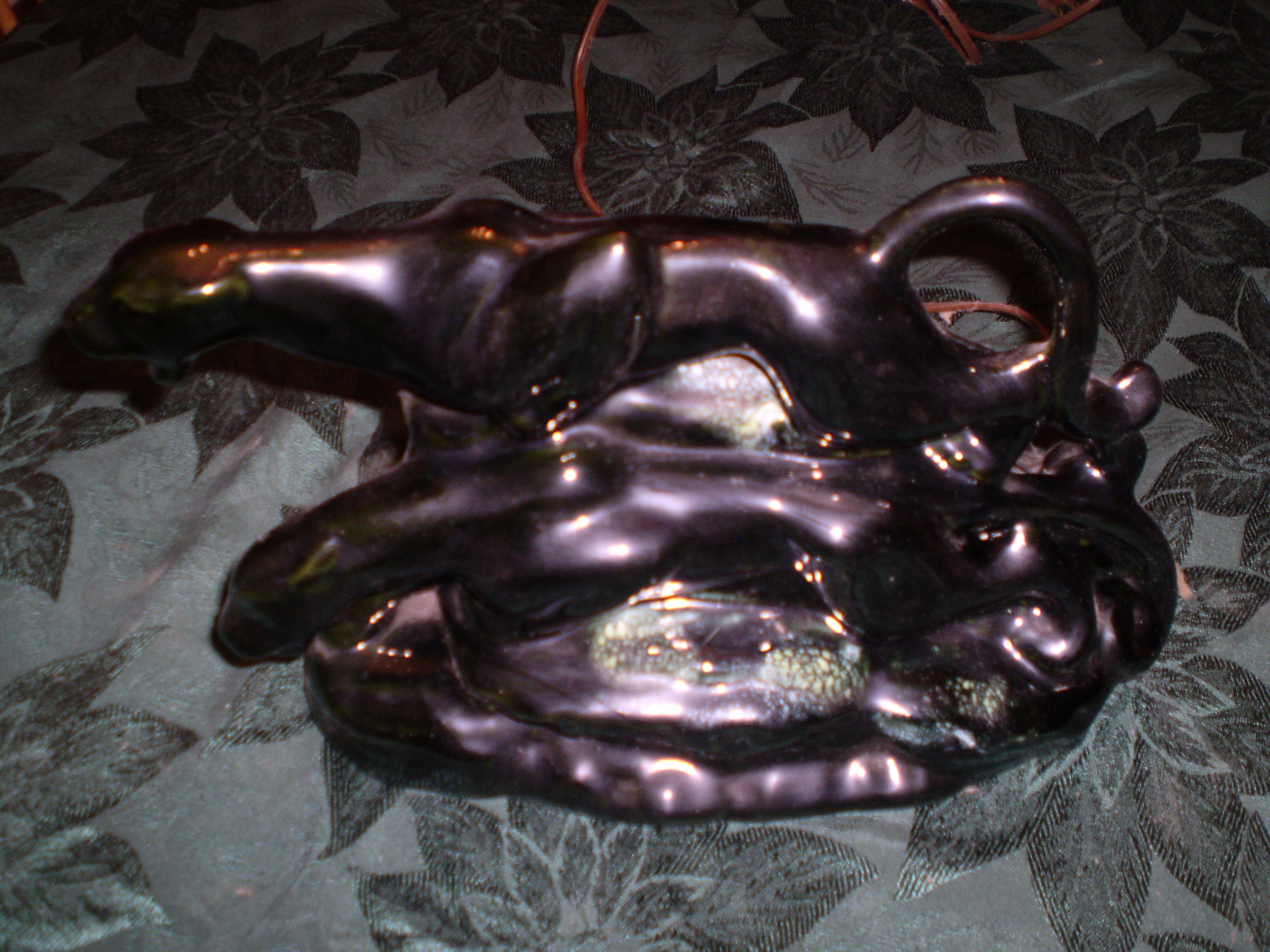 Haeger two panther TV Lamp [ebony cascade glaze]
